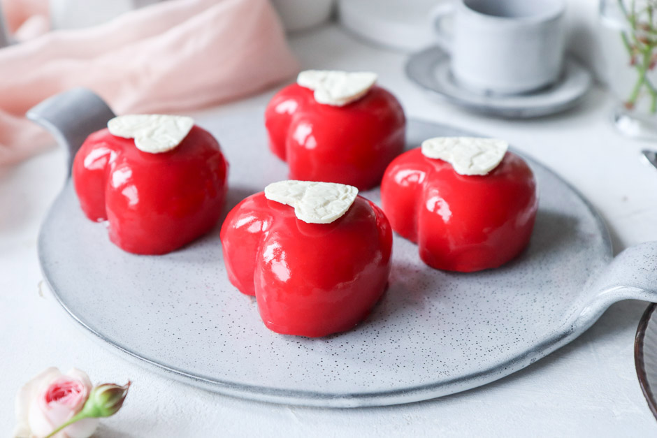 Все компоненты готовы к сборке пирожных. Я собрала их в форме сердце. Скоро 14 февраля, эти пирожные будут подходящим десертом на романтическом ужине.